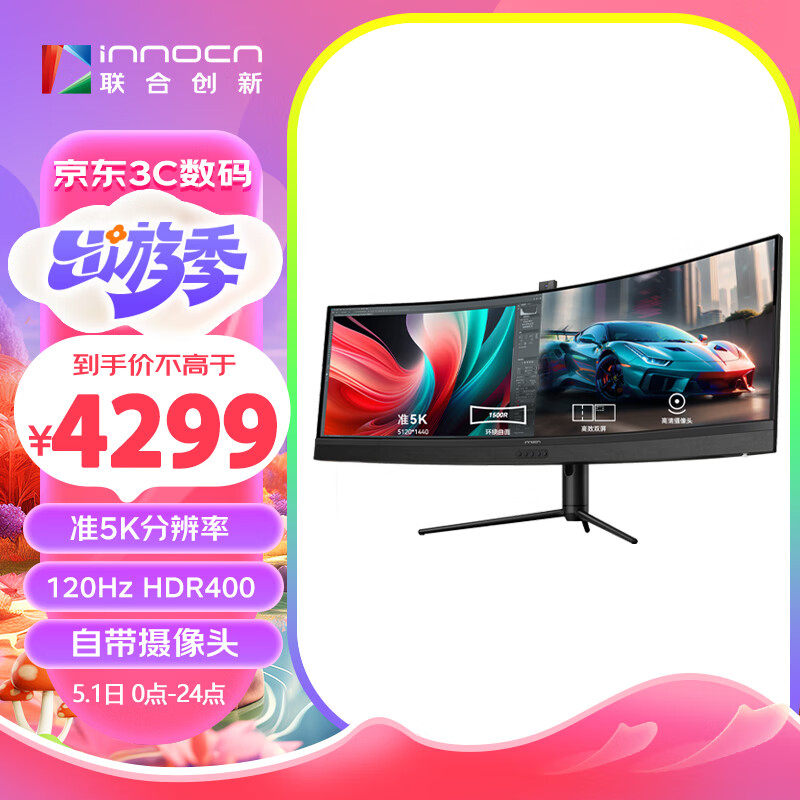 联合创新(Innocn)44.5英寸 准5K曲面带鱼屏32:9 120HZ Type-C90W RJ45网口 摄像头麦克风 电脑显示器45C1R价格:4599.00元!