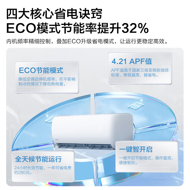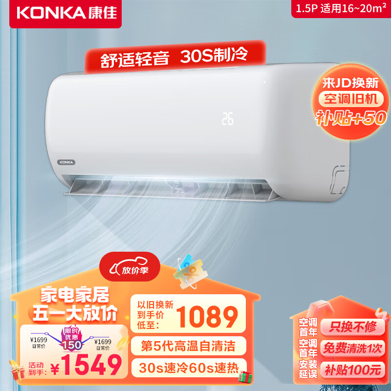 康佳(KONKA)1.5匹 新能效 快速冷暖 舒适节能 第四代自清洁 变频壁挂式空调挂机 以旧换新 KFR-35GW/HV3价格:1549.00元!