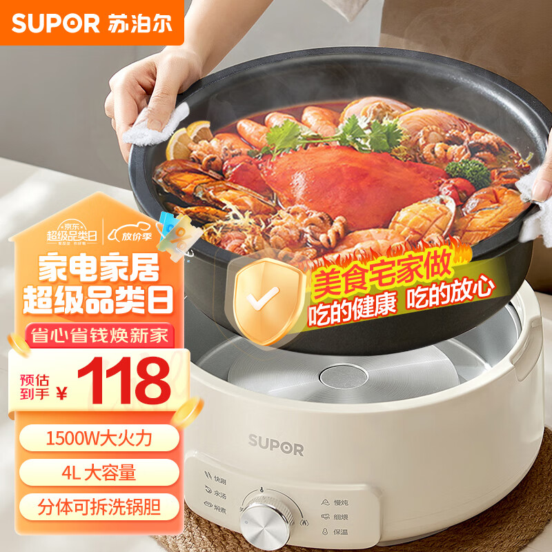苏泊尔(SUPOR)电火锅 电煮锅 火锅专用锅 家用多功能涮肉锅 不粘分体可拆洗4L电热锅 多用途锅H28YK857价格:118.00元!
