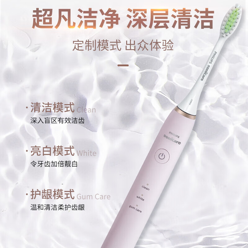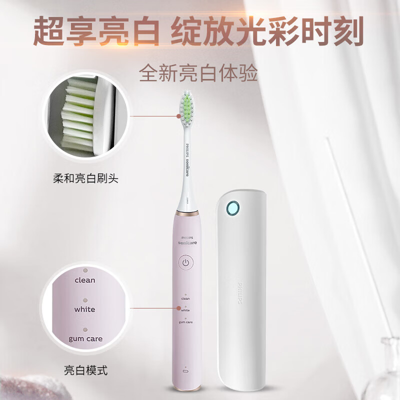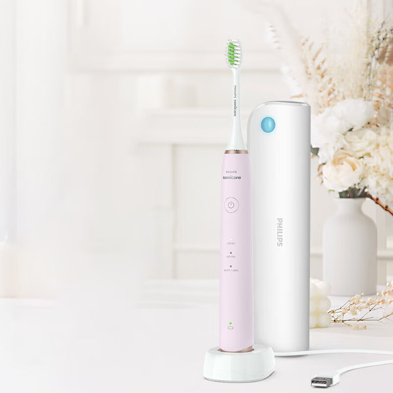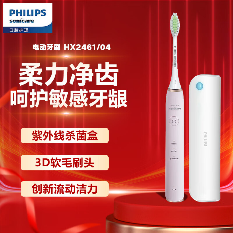 飞利浦(PHILIPS)电动牙刷成人声波震动牙刷情侣款牙刷带紫外线杀菌盒情人节礼物送女友送男友 HX2461/04蔷薇粉价格:319.00元!