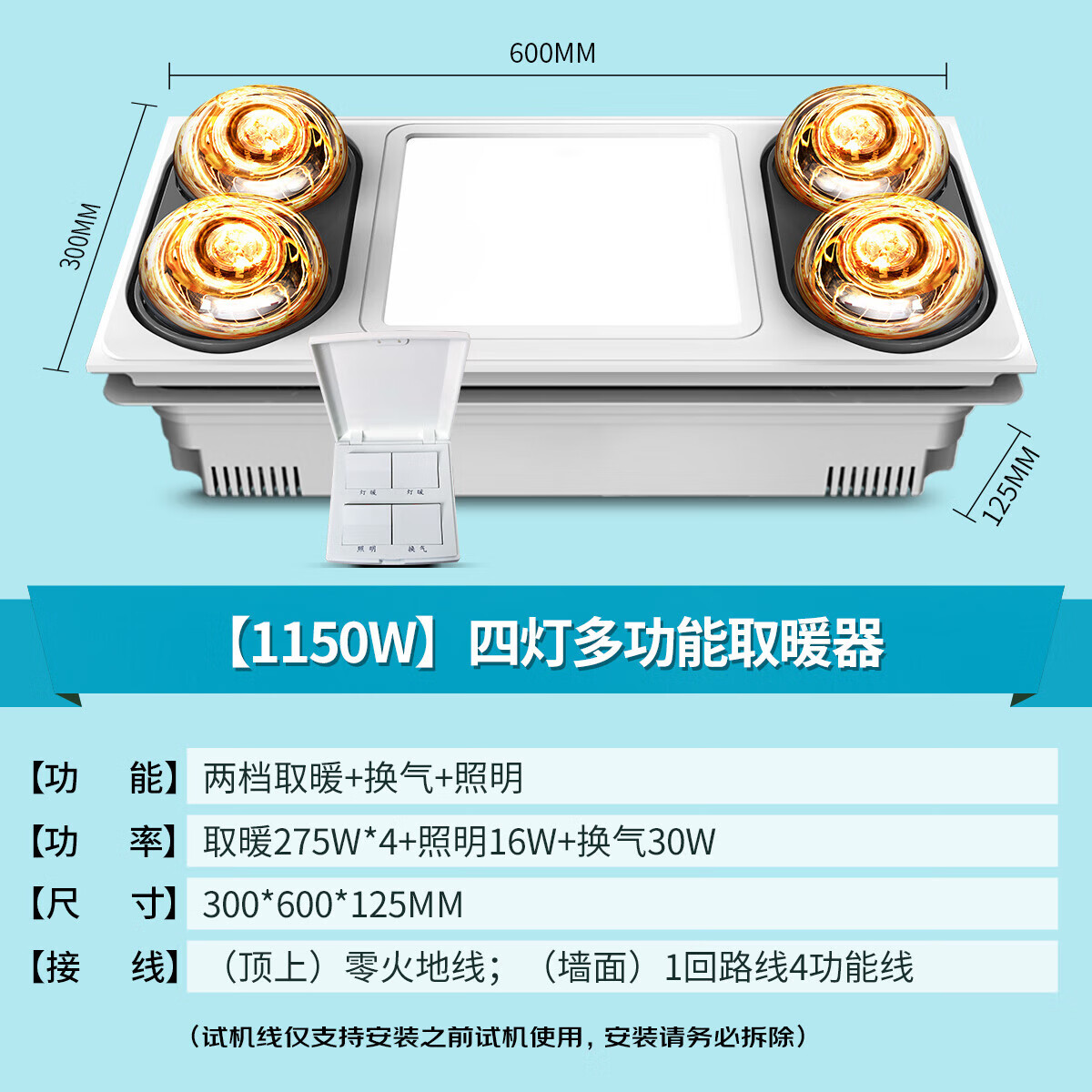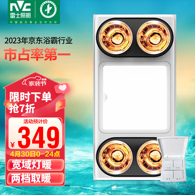 雷士(NVC) 浴霸灯暖照明排气一体集成300x600卫生间取暖换气照明三合一灯暖价格:499.00元!