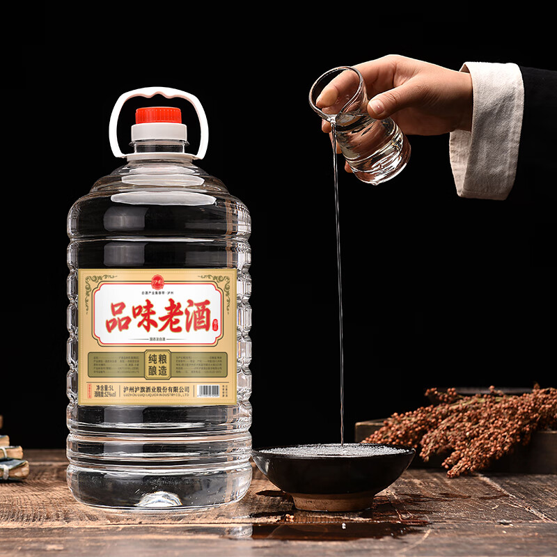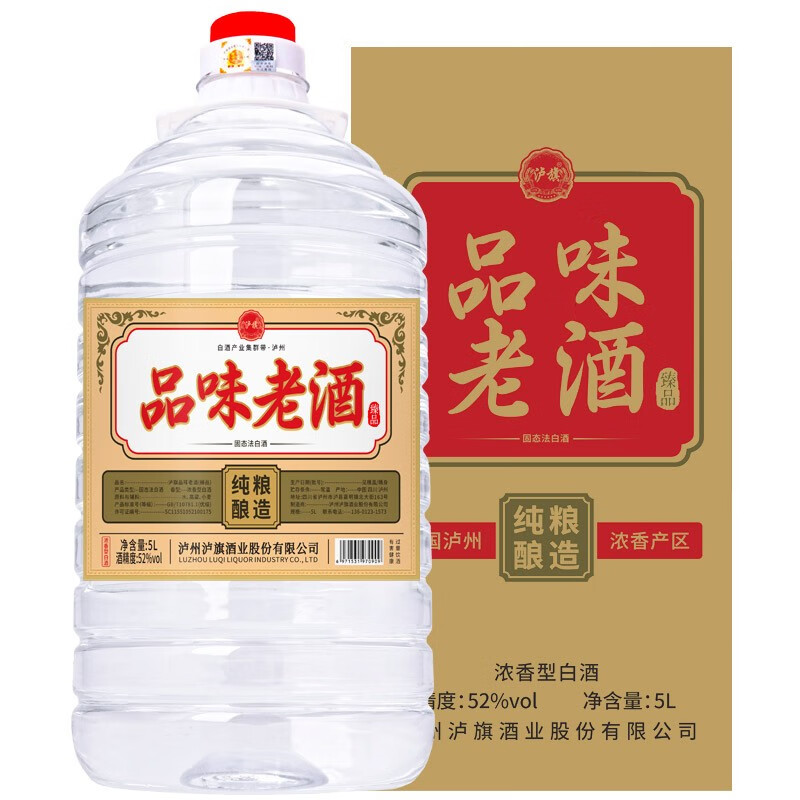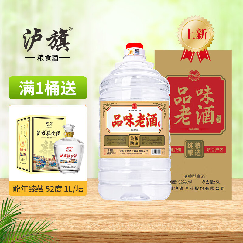 泸旗泸州红高粱酒 浓香型纯粮食白酒 可直饮高度桶装散酒泡酒 52度 5L 1桶 品味【臻品】新包装价格:969.00元!