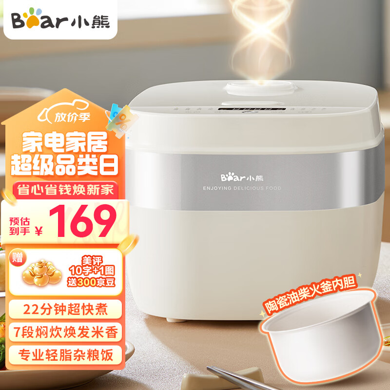 小熊(Bear)电饭煲 电饭锅 家用多功能3升智能防溢预约元釜柴火饭2-3人迷你米饭锅4-5人 DFB-D30Y1 3L价格:169.00元!