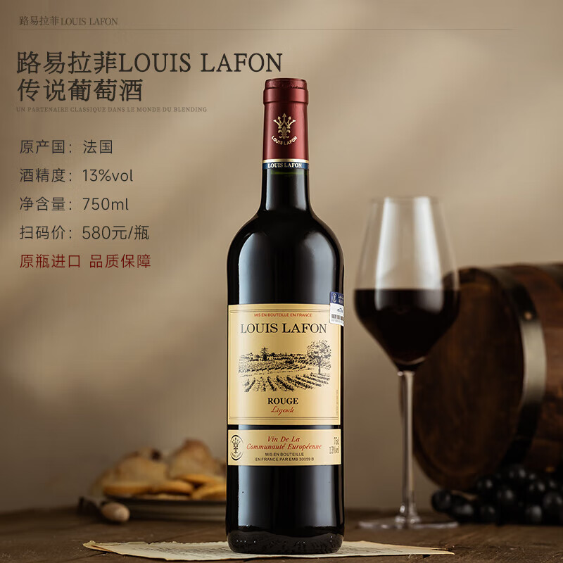 路易拉菲(LOUIS LAFON)法国原瓶进口红酒 干红葡萄酒750ml*6瓶六支木质礼盒装价格:618.00元!