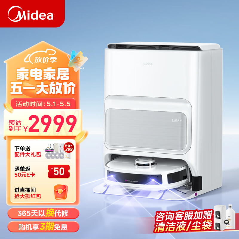 美的(Midea)扫地机器人扫拖一体 灵眸V12极地白 自动集尘扫拖洗烘一体机自动清洗拖布洗地机拖地机价格:4999.00元!