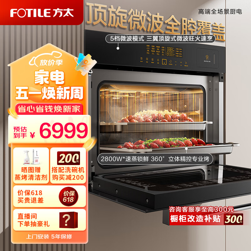 方太嵌入式蒸烤箱一体机微蒸烤炸一体机 APP智控44L大容量多功能家用蒸箱烤箱空气炸全腔微波炉02-G1.i价格:6999.00元!