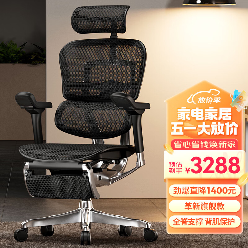 Ergonor保友金豪e2代高端人体工学椅电脑椅办公椅电竞椅子 黑色网+躺舒宝价格:4688.00元!