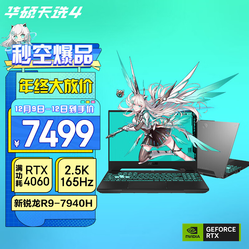 华硕天选4 锐龙版 15.6英寸高性能电竞游戏本 笔记本电脑(新R9-7940H 16G 512G RTX4060 2.5K 165Hz P3广色域)灰价格:7499.00元!