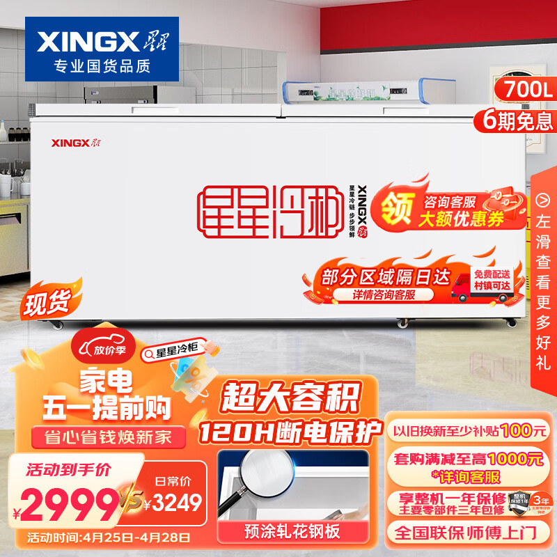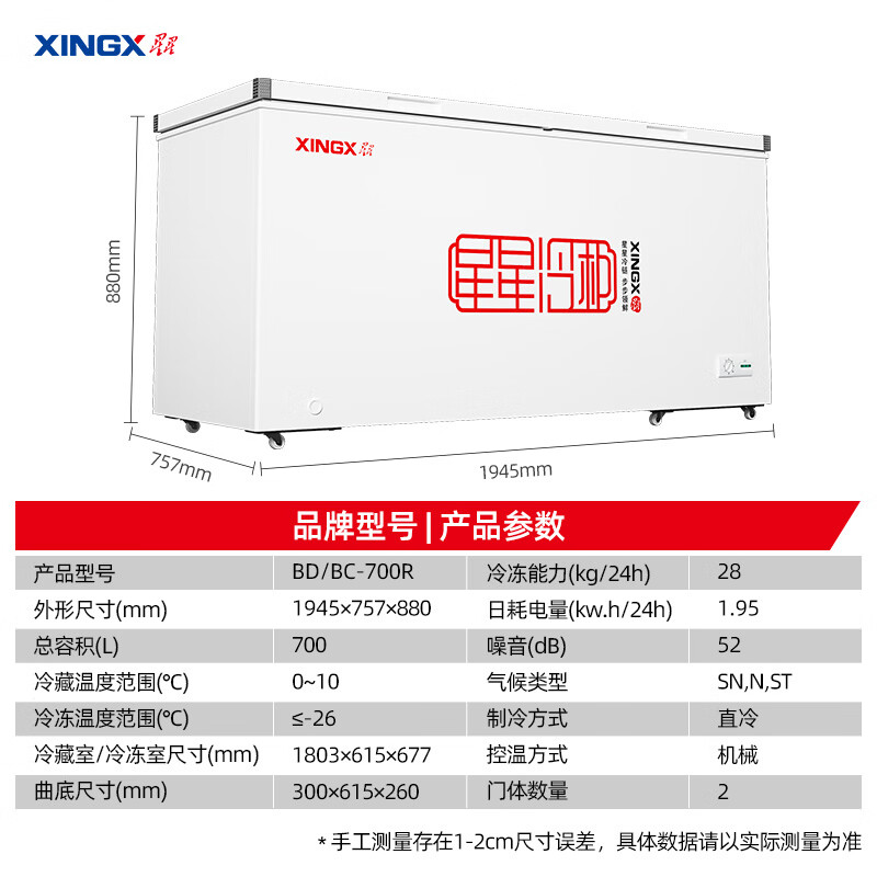 星星(XINGX) 700升 商用大容积卧式单温冰柜 冷藏冷冻转换冷柜 单箱变温冰箱 BD/BC-700R价格:2999.00元!