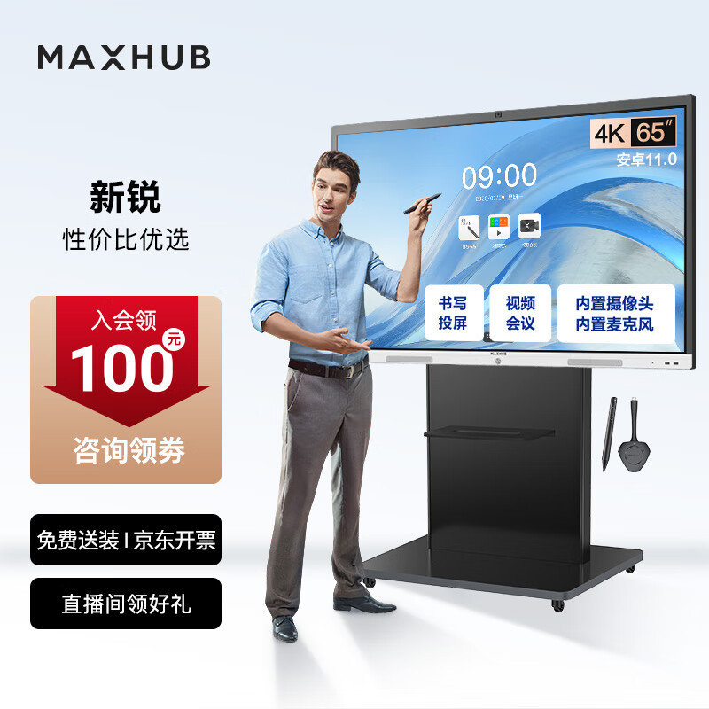 maxhub视频会议平板一体机教学智慧屏摄像头麦克风触摸屏电子白板V6新锐E65+商务支架+无线传屏+笔价格:9679.00元!