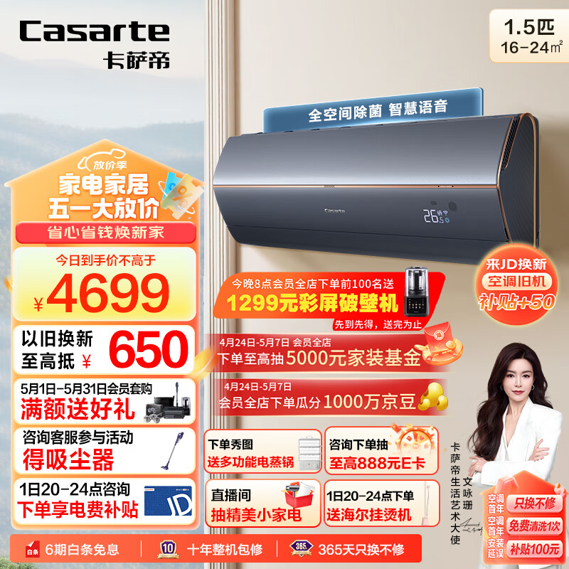 卡萨帝(Casarte)空调1.5匹 银河 卧室变频冷暖挂机 新一级能效 智慧语音 CAS358GAB(81)U1 以旧换新价格:4699.00元!