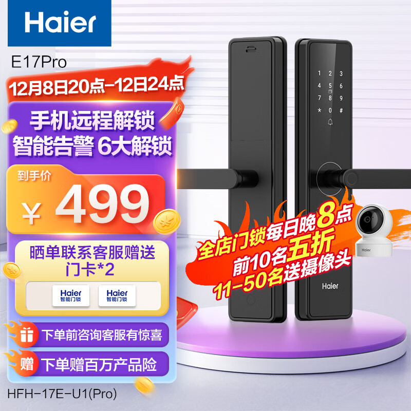 海尔 (Haier) 智能门锁 指纹锁 密码锁 家用防盗门智能联网 防盗门 入户门 木门电子锁 E17PRO-升级版标准锁体【99%买家选择】价格:599.00元!