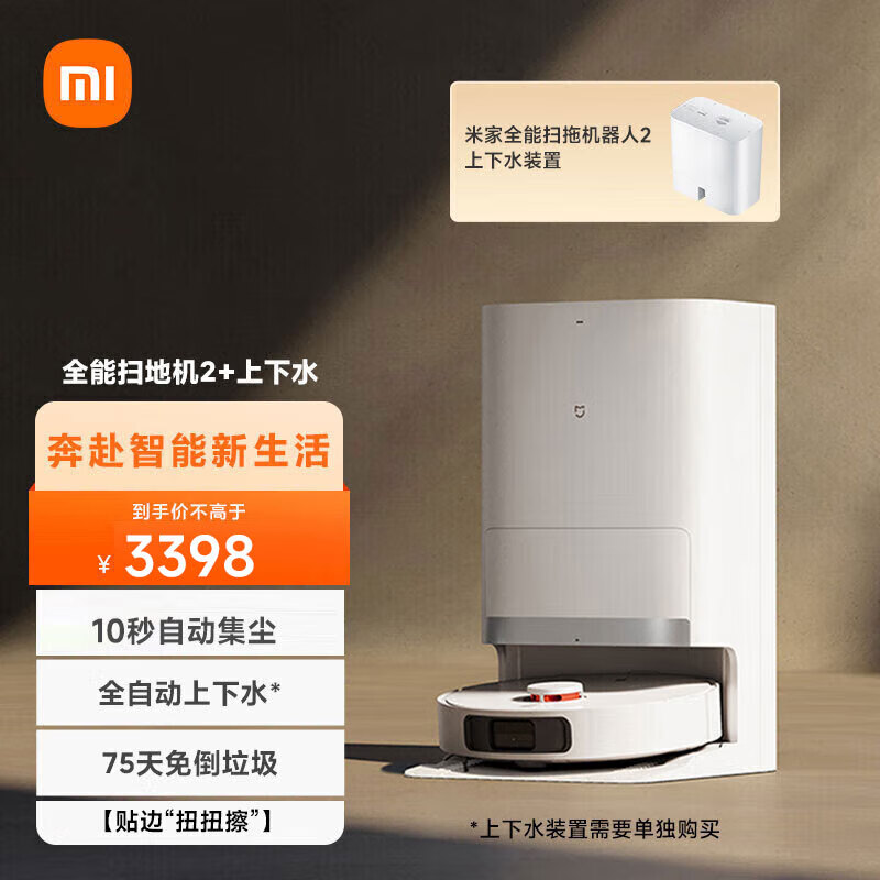 米家小米全能扫拖机器人2 扫地机器人扫拖一体 扫拖洗一体 自动清洗自动集尘 洗地机价格:3289.00元!