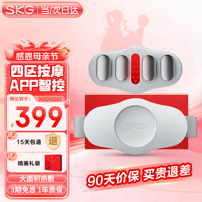 SKG腰部按摩器腰带腰椎智能腹部红光热灸热敷便携按摩仪 实用生日礼物送父母妈妈男女友老婆礼品 【热销-豪华款】四区按摩+红外热敷价格:398.00元!