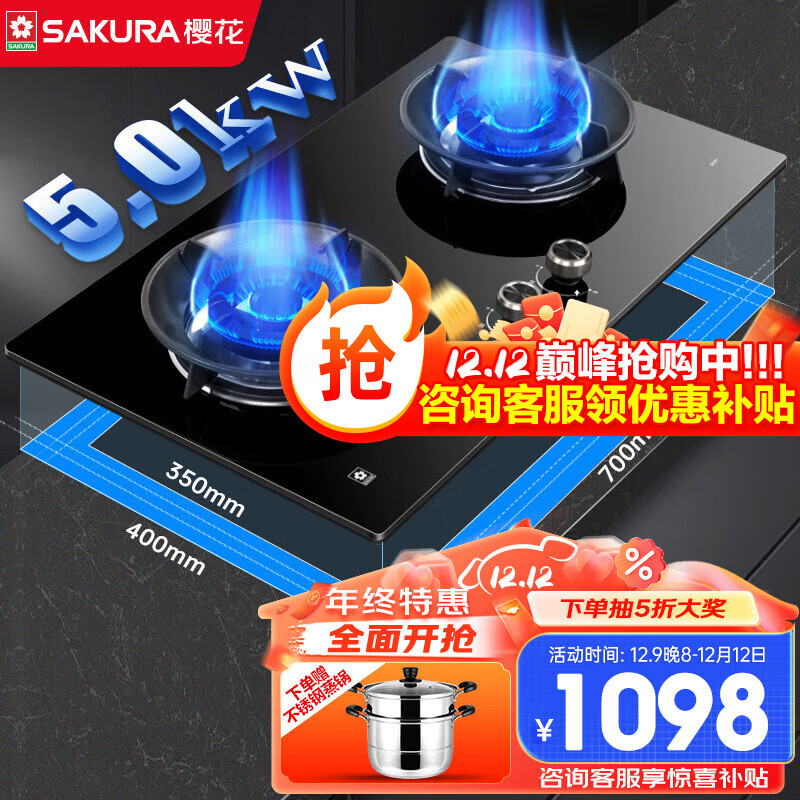 樱花(SAKURA)燃气灶嵌入式燃气灶天然气灶台炉灶具猛火灶家用台式液化气灶一级能效零秒点火 GC01【液化气】5.0KW多开孔尺寸安装价格:1499.00元!