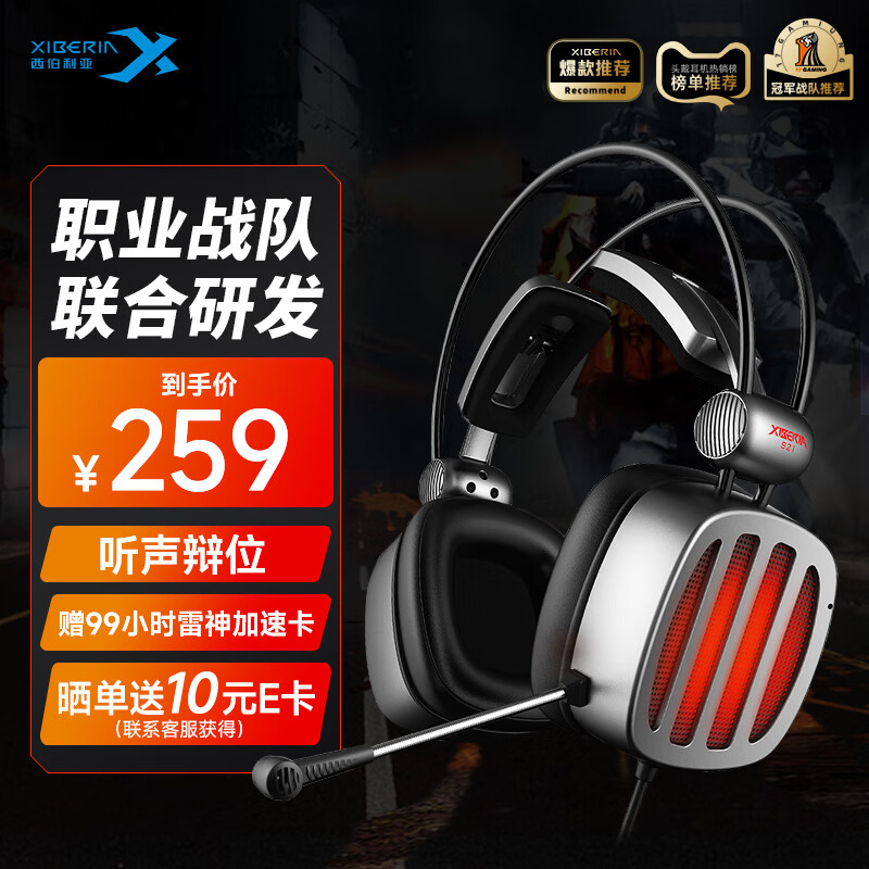 西伯利亚(XIBERIA)S21 游戏耳机头戴式电脑耳机带麦电竞耳麦7.1声道不求人吃鸡耳机 铁银灰 升级版2代价格:259.00元!