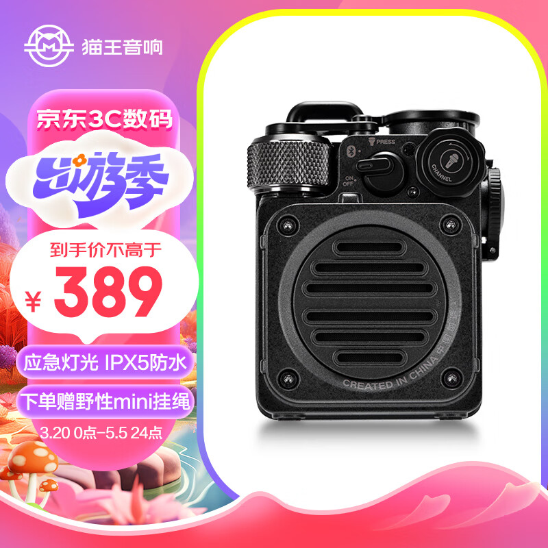 猫王收音机猫王音响野性mini便携蓝牙音箱迷你小音响复古音箱户外防水低音炮七夕情人节礼物送男友铁甲黑价格:389.00元!