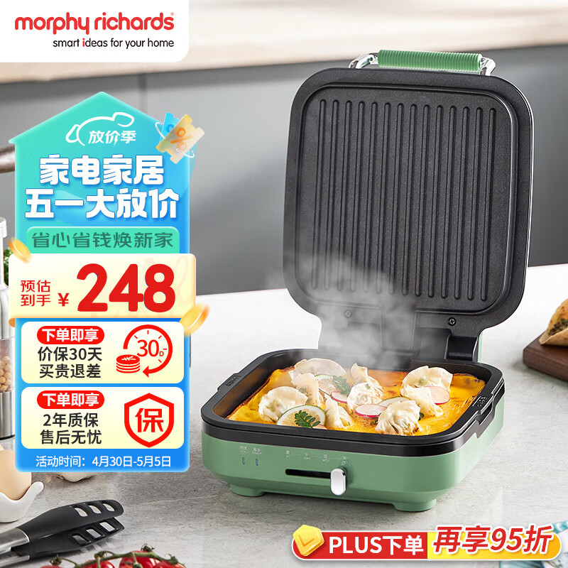 摩飞电器(Morphyrichards)电饼铛 家用双面加热大火力三明治早餐机 下盘可拆卸面包吐司煎烤机烙饼锅 MR8600清新绿价格:248.00元!