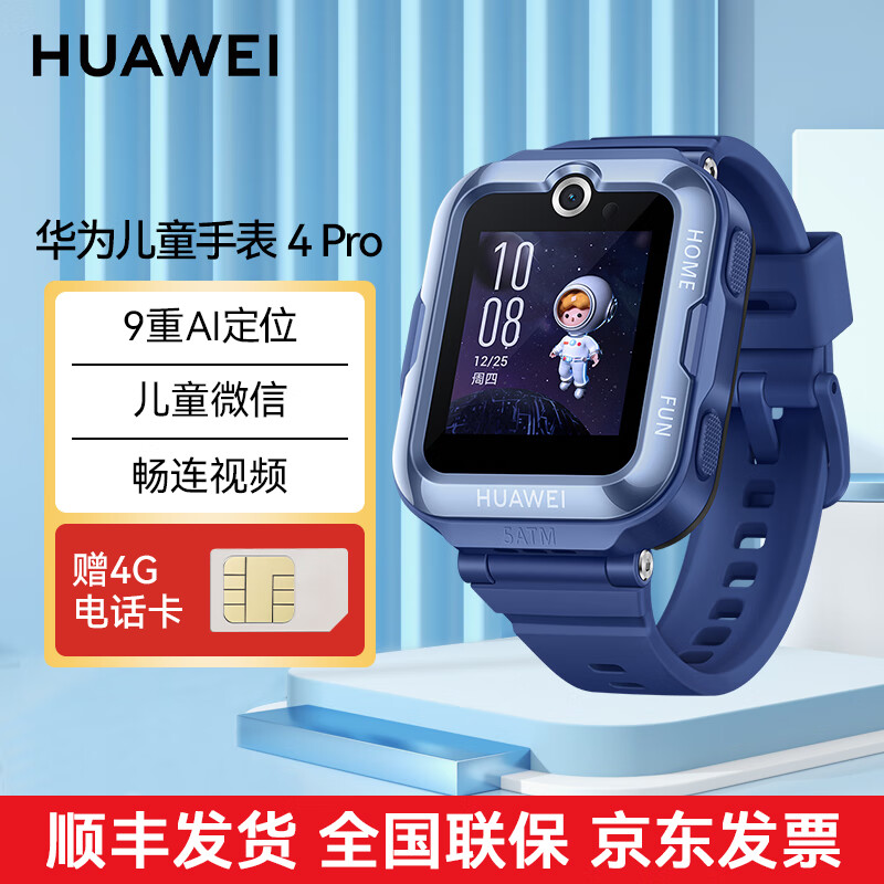 华为(HUAWEI)儿童手表 4 Pro 畅连视频 AI定位 灯光守护 50米防水 儿童微信 快充长续航 4G通(蓝色)价格:535.00元!