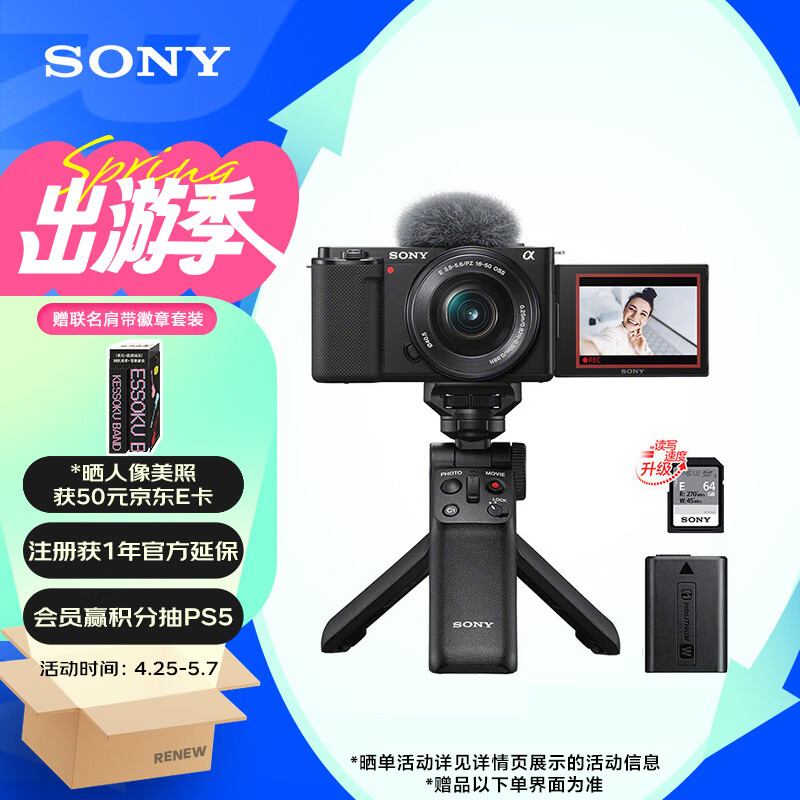 索尼(SONY)ZV-E10L APS-C半画幅微单相机 E64A存储卡电池蓝牙手柄套装 美肤拍照 精准对焦 VLOG 黑色价格:5999.00元!