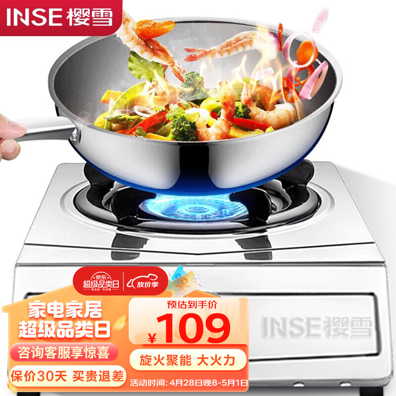 樱雪(INSE)燃气灶单灶 台式不锈钢面板4.5KW单眼煤气灶 家用猛火节能煤气炉具 JZT-T1501(G)WS天然气价格:109.00元!