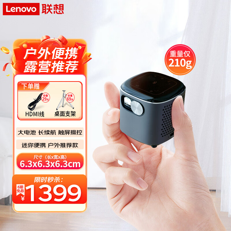 联想(Lenovo)T6S 小微型家用投影仪 高清迷你便携式户外儿童手机投影机(内置电池 小巧便携 无线投屏)价格:1369.00元!