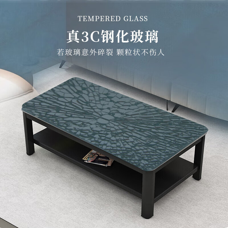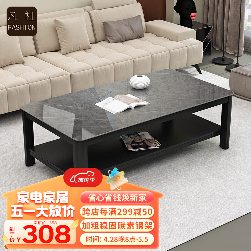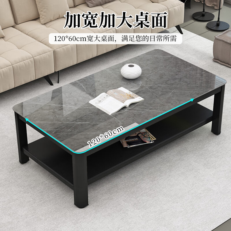 凡社茶几客厅简约现代 钢化玻璃仿岩板大理石纹双层储物办公茶桌价格:358.00元!