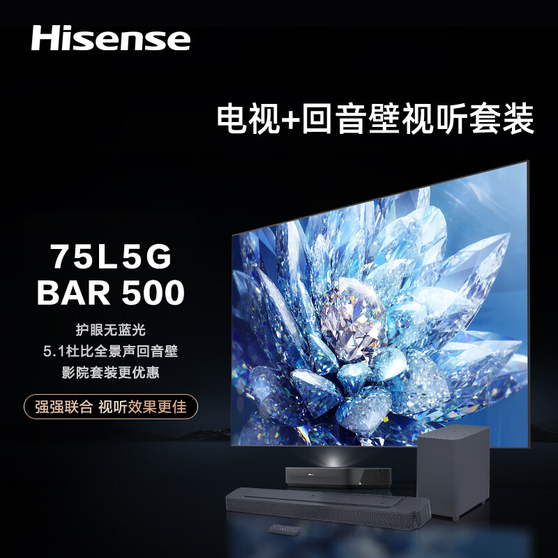 海信激光电视75L5G+Bar500沉浸追剧套装 75英寸 健康护眼4K超高清 环绕声场智能校正 远场语音电视机价格:9598.00元!