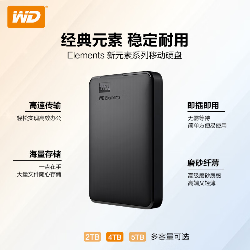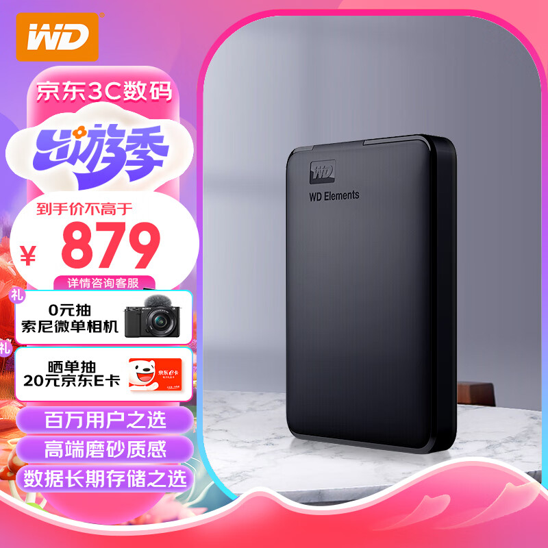 西部数据(WD)4TB 移动硬盘 USB3.0 Elements 新元素系列2.5英寸 机械硬盘 大容量 手机电脑外置外接价格:879.00元!