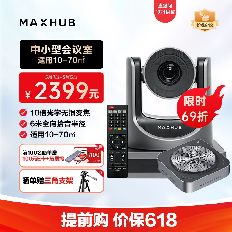 MAXHUB视频会议设备全套系统套装 解决方案1080P 10倍光学变焦会议摄像头SC51S+全向麦克风BM31拾音6米价格:2759.00元!