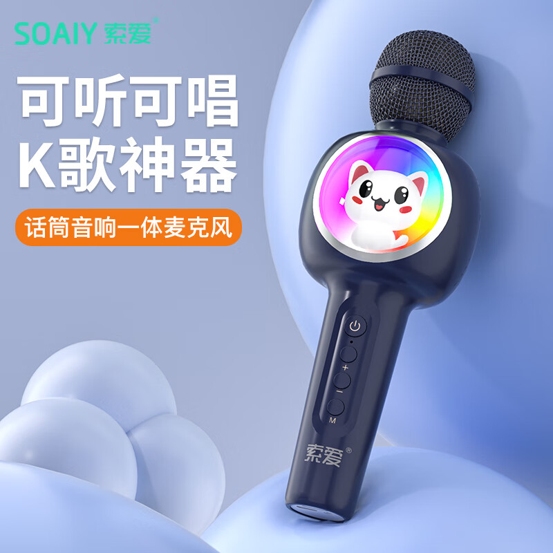 索爱(soaiy)MC63音响一体麦克风唱歌录音声卡套装k歌宝无线蓝牙儿童话筒家庭ktv 【沉稳蓝】 价格:99.00元!