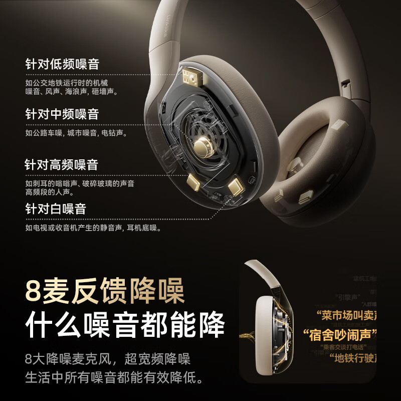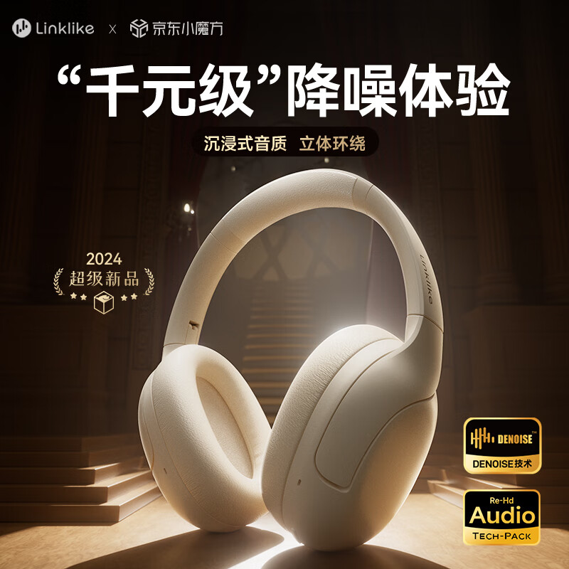 linklike【100%好评推荐丨8麦降噪】蓝牙耳机头戴式主动降噪无线音乐电竞游戏运动隔音适用苹果华为电脑pc -50dB强劲降噪丨千元沉浸音质价格:798.00元!