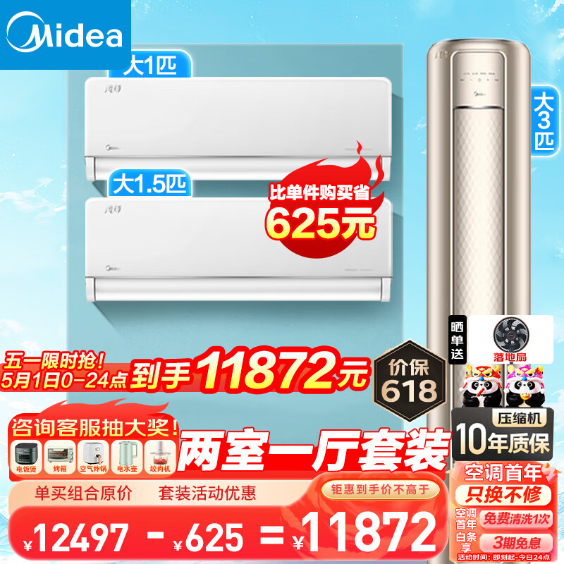 美的(Midea)风尊空调套装两室一厅一套购齐 新一级能效 变频挂机柜机 立式空调 以旧换新 3匹柜机+风尊时尚版价格:11872.00元!