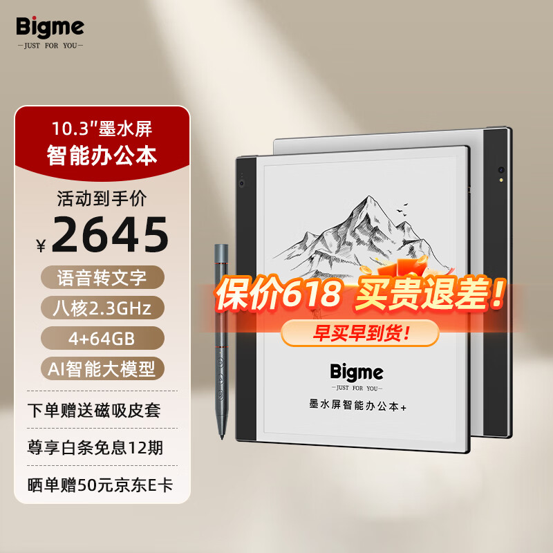 BIGME inkNoteS双摄像头智能办公本 10.3英寸墨水屏电纸书手写笔记本电子书阅读器价格:2645.00元!