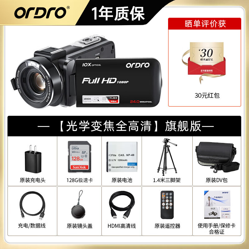 欧达(ORDRO)Z82摄像机高清直播摄影机数码DV便携录像机家用旅游户外vlog短视频 10倍光学变焦 5轴增强防抖价格:1734.00元!