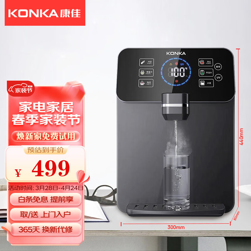 康佳(KONKA)饮水机家用净水器伴侣 智能触控 速热即饮 UV除菌 彩屏管线机KY-RGB4价格:499.00元!