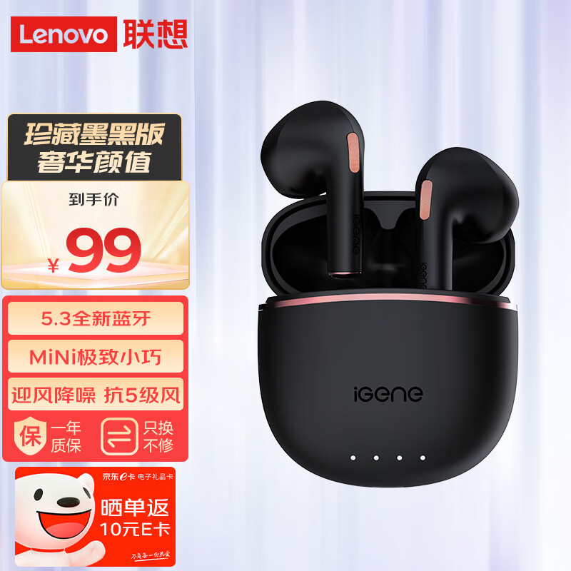 击音(iGene)V6 真无线蓝牙耳机 半入耳舒适佩戴 通话降噪超长续航音乐游戏运动耳机 适用华为oppo苹果 深空黑价格:99.00元!