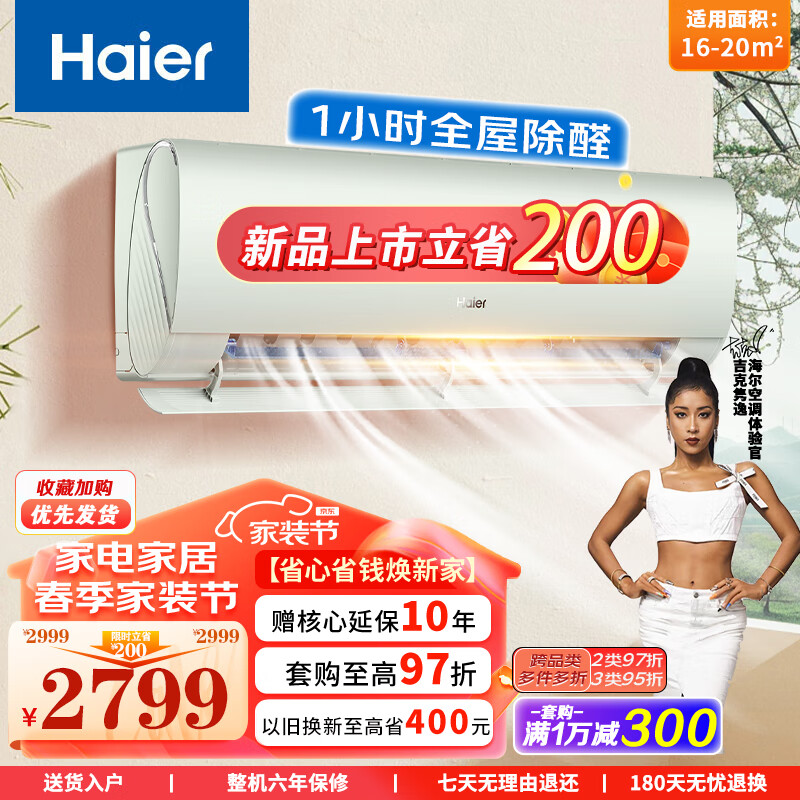 海尔1.5匹劲爽除醛空调挂机新一级能效变频冷暖节能省电高温自清洁除醛除湿空调挂机35LGA 以旧换新价格:2999.00元!