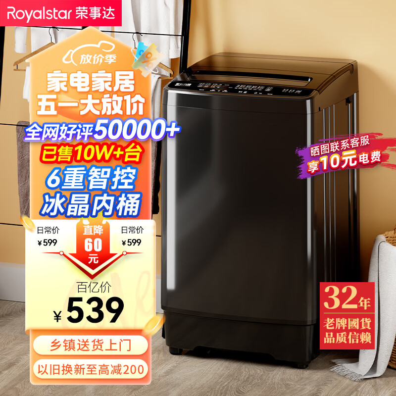 荣事达(Royalstar) 洗衣机 6.5公斤全自动租房宿舍家用波轮小洗衣机 以旧换新 透明灰ERVP191013T价格:539.00元!