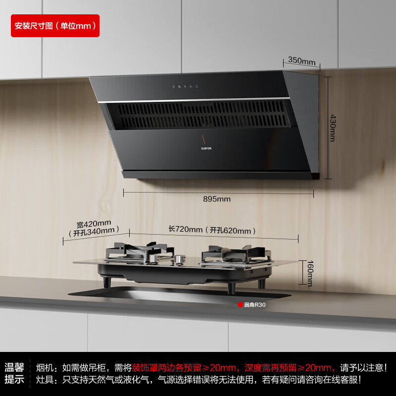 烟机安装尺寸:900±50mm