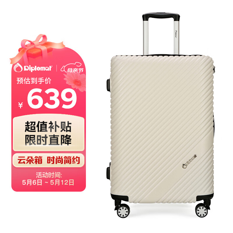 Diplomat外交官行李箱24英寸大容量拉杆箱子男密码云朵旅行箱女TC-23253白价格:639.00元!