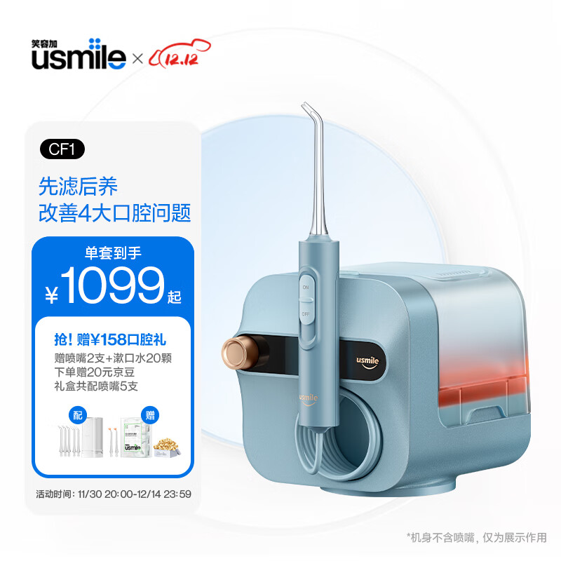 usmile笑容加冲牙器 洗牙器 水牙线 洁牙器 洁牙机 家用台式冲牙器 CF1冲牙器 星耀蓝价格:1099.00元!