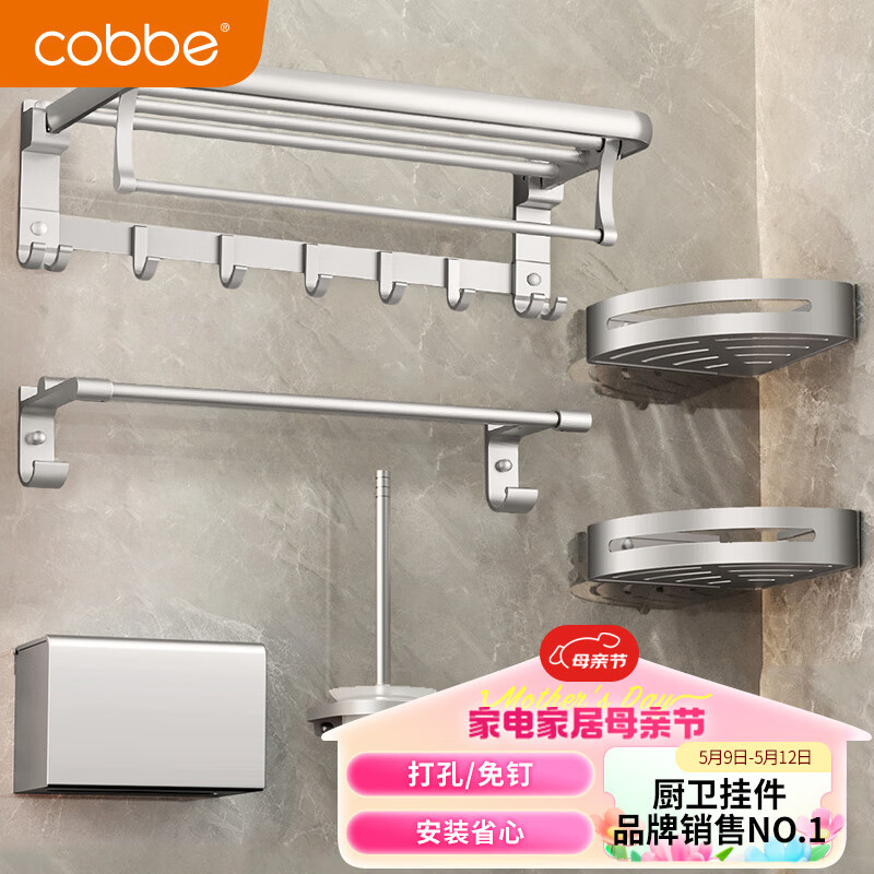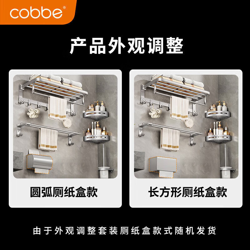 卡贝(cobbe)毛巾架免打孔太空铝浴室置物架卫生间挂件厕所浴巾架卫浴五金套装价格:218.00元!