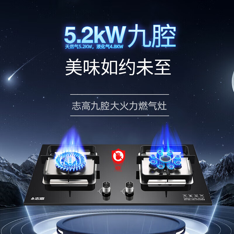 志高(CHIGO)燃气灶天然气灶煤气灶双灶家用5.2kW猛火灶具 台嵌两用猛火防爆钢化玻璃JZT-T150价格:509.00元!