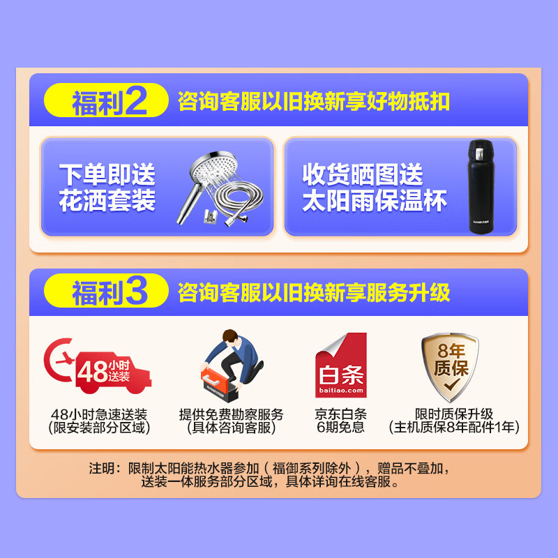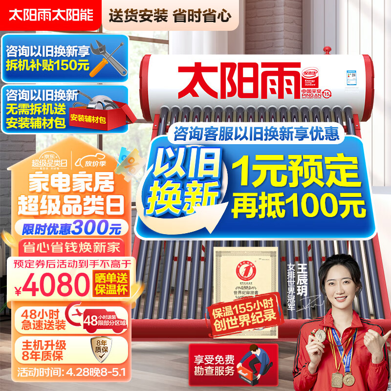 太阳雨 (Sunrain)太阳能热水器家用保热墙一级能效 A无电系列30管220L价格:4480.00元!