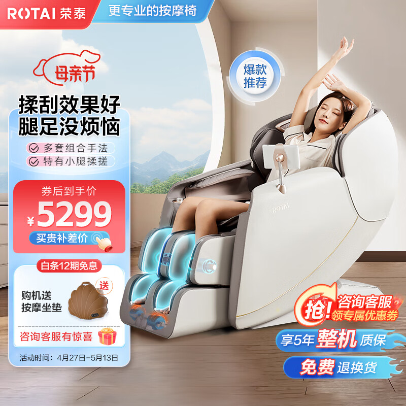 荣泰(RONGTAI)按摩椅家用全身揉捏全自动多功能太空舱按摩沙发椅S56 灰啡色价格:6999.00元!