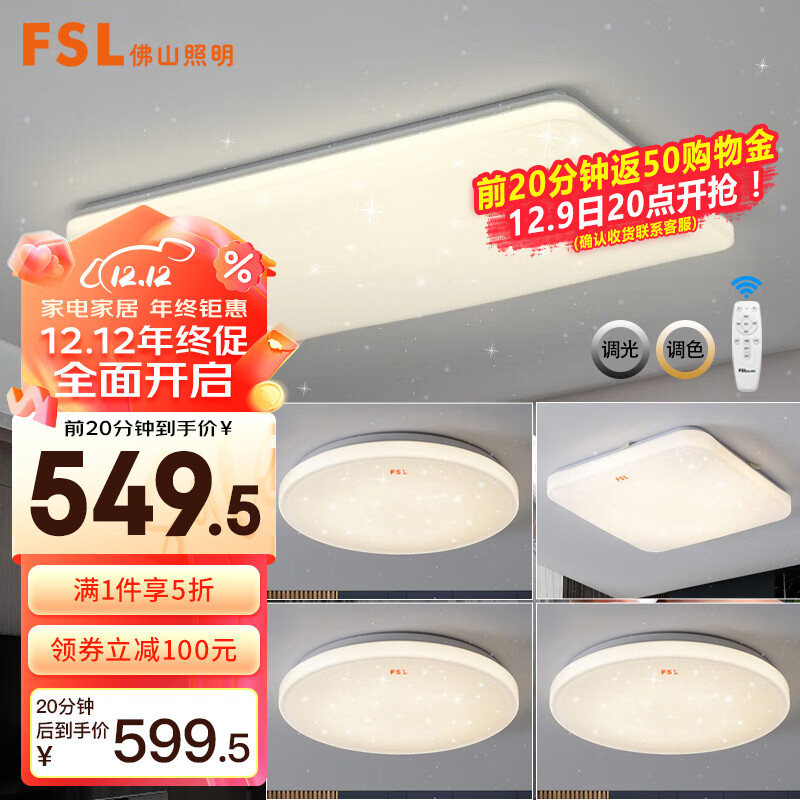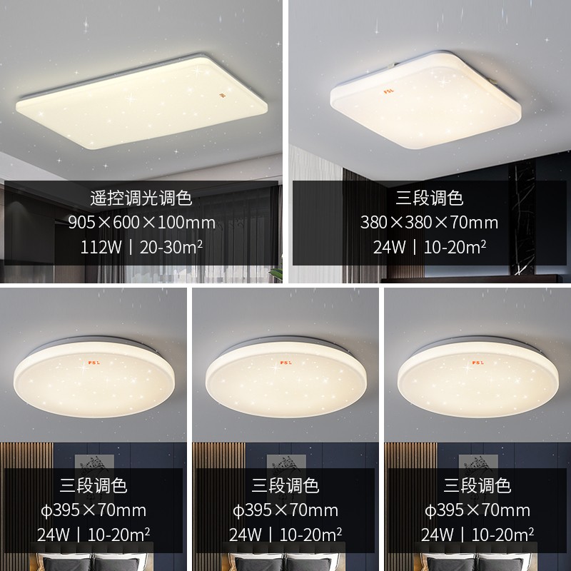 FSL佛山照明灯具套餐LED吸顶灯智能客厅卧室灯遥控调色四室一厅54060价格:1399.00元!