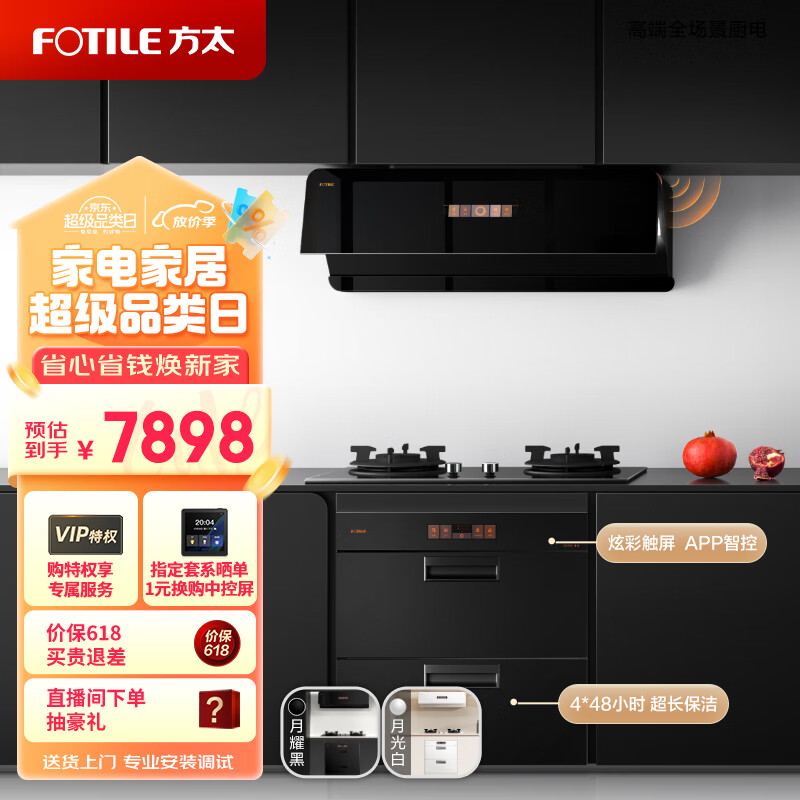 方太(FOTILE)烟灶消三件套 方太新月系列 24巡航风量变频烟机 5kW燃气灶 智控嵌入式消毒柜F1A+THF1A+JF1E.i黑价格:7898.00元!