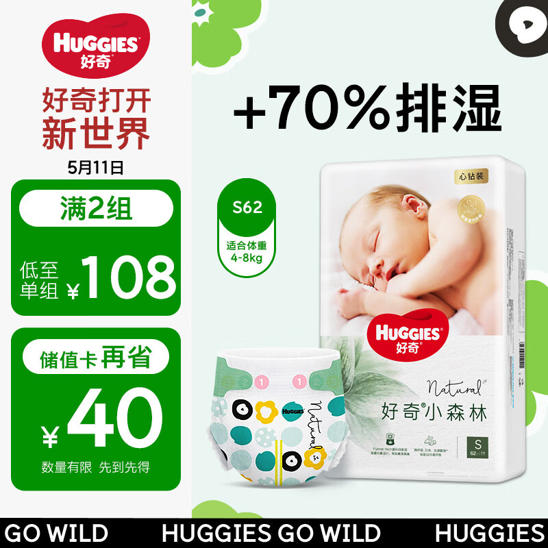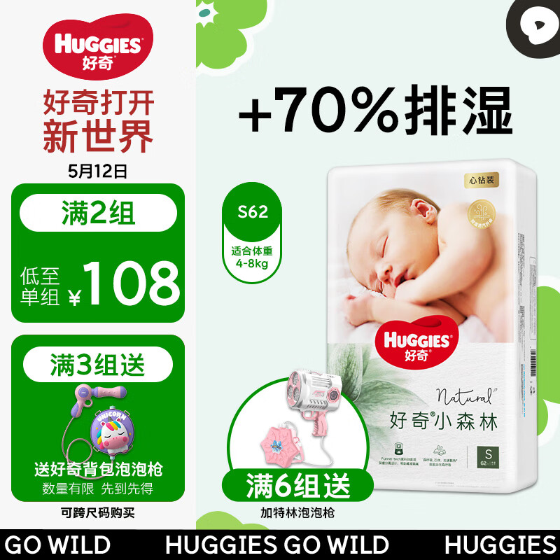 好奇(Huggies)心钻装小森林纸尿裤S62片(4-8kg)新生儿小号婴儿尿不湿超薄价格:122.00元!
