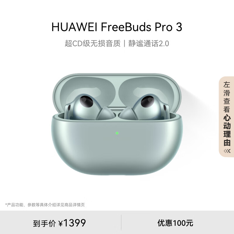 华为(HUAWEI)FreeBuds Pro 3 真无线蓝牙降噪耳机 入耳式动态降噪/游戏影音/离线查找/适用Mate 60 雅川青价格:1399.00元!